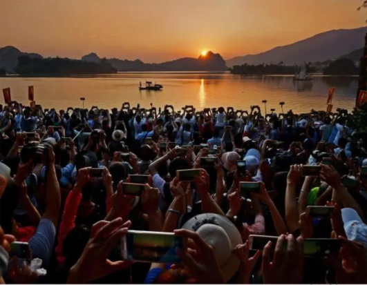 9月14—22日,肇庆星湖国家湿地公园出现了一年一度的秋分季节“卧佛含丹”美景,引来了无数游客前来一睹这一天象奇观。肇庆这个位于北回归线上的城市就是那样神奇。北回归线像一支画笔,画出了多彩肇庆之美,还画出了众多天象奇观,除了“卧佛含丹”外,还有“立竿无影”“月亮垂照”奇观,以及出米洞的神奇。