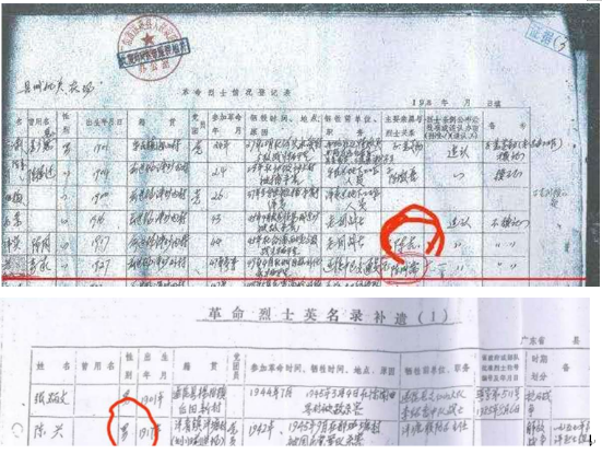 况且,湛江市档案馆卷宗号85、目录号n2、案卷号032保存着潭平村李英(李兴,女)、叶生等同志参军,并在战斗中牺牲;湛江市档案《评划解放战争游击根据审批表》还查明,1992年~1993年期间,分管场长廖予群,主管场长罗平,遂溪县副县长陈广森,湛江市副市长植标志等人签名同意上报畔塘管区潭平村陈兴(李兴,女)、叶生烈士为革命烈士村庄。