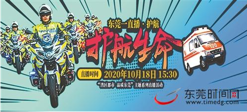 10月18日,首场“护航”主题直播活动中,东莞公安铁骑将与白衣天使携手,以“蓝白搭档”扶危救难、抗疫故事为引线,讲述职能部门为群众生命安全奋斗的事迹。