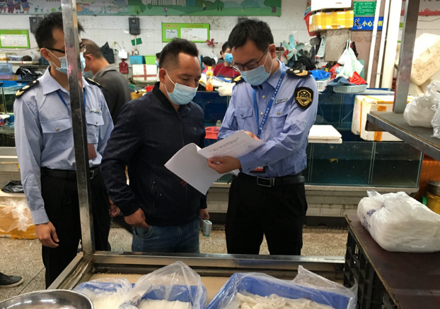 检查中,执法人员仔细查看农贸市场、超市、餐饮单位所销售的湿粉类食品的来源地、生产日期、储存方式以及产品标签标识是否符合规定等情况,同时发放关于湿米粉类产品《生产经营风险告知书》,督促经营者落实好食品储存工作。