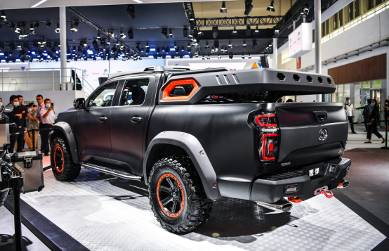 曾在成都车展亮相的长城炮越野皮卡穿越版,它主攻长途越野,重新设计了低风噪涉水喉,车内增加了快拆防滚架以提高安全等级、应对极限挑战,后斗设计了多用途自定义侧板置物架和滑动载重置物托盘,龙门架上可以安装各种型号的车顶帐篷,轮毂使用全球著名的雅泛迪轮毂搭配百路驰享有盛誉的KM3轮胎,适应更艰险的户外路况。整体而言,长城炮越野皮卡穿越版将野外行车的细节考虑到位,不愧是经验丰富的越野老炮。