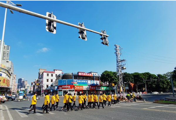活动中,40多名外卖骑手分成3个示范队,在该镇板石大街进行电动车出行示范演练。骑手们为过往群众示范如何正确佩戴头盔,告诫群众骑电动车应在非机动车道内行驶,无非机动车道的应靠右行驶,且行驶过程中不能随意转弯,做到不抢行、不闯红灯。在骑手们的引领下,电动车驾驶人员纷纷自觉把头盔戴好戴稳。此外,民警联合骑手,对不戴头盔的电动车驾驶员和闯红灯的行人进行交通劝导教育。