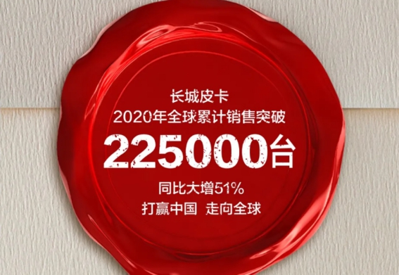 近日长城皮卡发布年终销量,再次让皮卡行业瞩目。数据显示,长城皮卡2020年累计销量突破22.5万辆,同比增长51.2%,市占率近50%,已连续23年获得国内、出口销量第一,全球累计用户近190万。