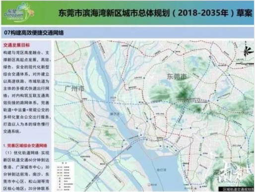 《东莞市滨海湾新区城市总体规划(2018-2035)草案》显示,广州地铁22号线,未来或南延至庆盛站、蕉门、南沙客运港,跨海而过连接东莞,经东莞滨海湾站(TOD)、继续东延至深圳沙井站,与深圳地铁18号线对接,可达高铁光明城站。