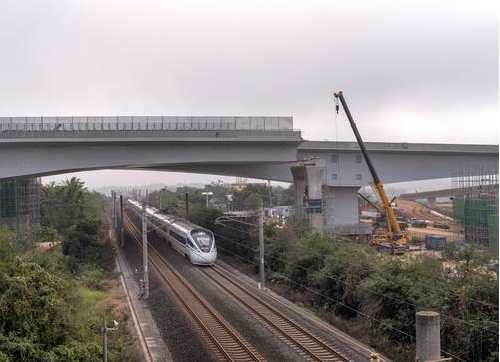海南省首个万吨双幅跨高铁转体梁同步转体成功