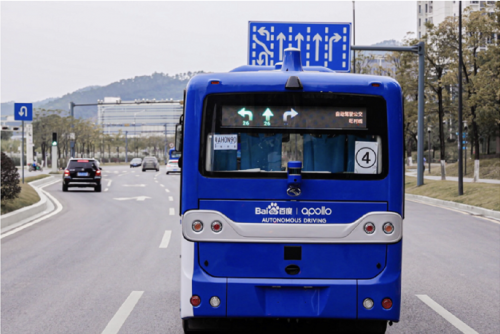 百度Robobus车尾屏向其他车主提醒红绿灯倒计时