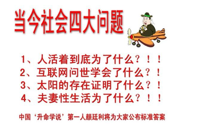 为了响应当前国家传播正能量号召,中国‘升命学说’第一人求前大师颜廷利先生提出的当今社会四大问题: