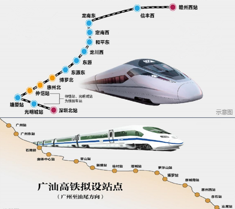 根据规划,预计2021年通车的赣深高铁将在博罗设麻陂站,并在博罗和小金口交界处设惠州北站。借助赣深高铁,博罗可通达莞、深。
