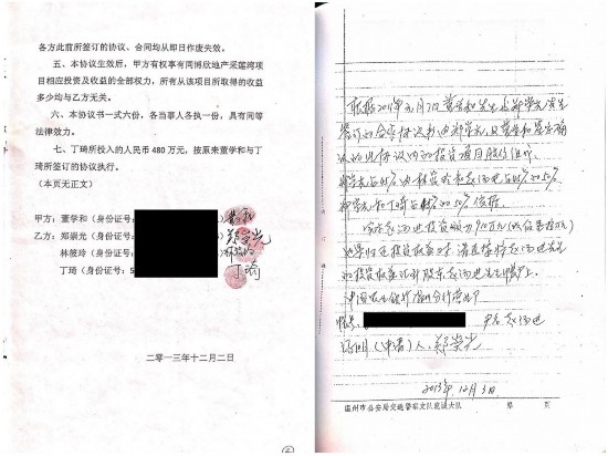 经过查账后发现,“我已经超额支付郑崇光247.6万元,因此就与郑崇光多次协商讨回247.6万元。但实在没想到,我不但没有要回钱,还因此无故背负近千万的债务”,董学和无奈的说。