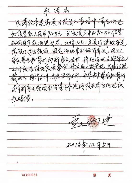 (赵汤进要求董学和止付投资款及利润的《承诺书》)