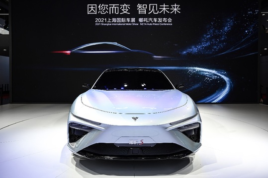 图为哪吒全新B级轿车哪吒S惊艳亮相。摄影:潘悦
