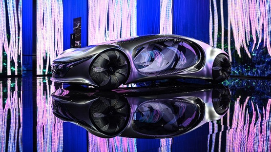 图为奔驰概念车VISION AVTR科幻气息十足。摄影:潘悦