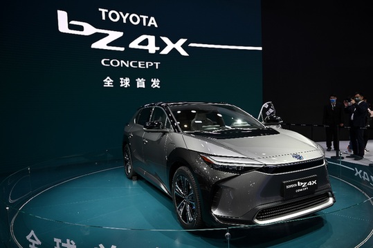 图为采用了全新设计语言的丰田概念车BZ4X。摄影:潘悦