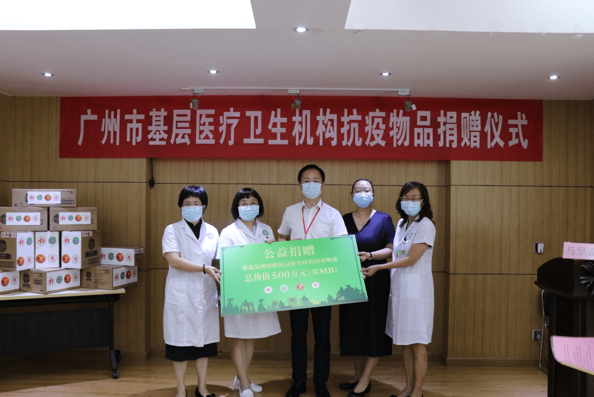 6月7日,在国家卫健委基层卫生健康司、国务院联防联控机制综合组赴广东工作组的支持下,健康中国公益行动项目办公室携手滴露品牌在广州市天河区石牌街华师社区卫生服务中心联合进行了抗疫物资捐赠活动。据悉,本次共计捐赠滴露消毒液、免洗洗手液等防疫物资价值500余万元,这批物资将通过广州市卫健委等相关单位根据实际情况分发至广州市各基层医疗卫生机构的防疫一线。