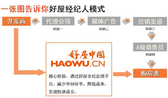好屋经纪人是好屋中国创制的一种开放性分红模式,分为自由经纪人和专业经纪人,任何人都可以成为好屋经纪人。通过平台注册的经纪人统称为自由经纪人,社会人都可以成为自由经纪人;专业经纪人则是针对房产从业人员的专属称呼。其诱人之处在于,成功推荐好友买房即可获得高额佣金。整个流程可大致概括为:注册→登录→推荐意向用户(姓名+电话)三步,一旦被推荐客户成功购买好屋中国合作楼盘,好屋经纪人便可以获得总成交价千分之一的返利佣金,而专业经纪人可以获得总成交价千分之二以上的佣金。截至目前,好屋经纪人总数已达215万人。