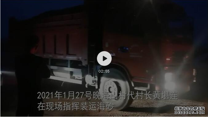 其三、盗卖海沙。以黄堪连为首的村民小组成员抱团腐败,非法盗卖村集体虾塘的海沙。村民小组尚未到相关部门办理任何报批手续,也未召开全体村民或村民代表会议。2021年1月27傍晚,个别村民阻拦,黄堪连代村长却带领多名村干部到现场保护非法载砂车队通行。翌日,村民们获知后,再次自发组织阻拦,此前,已盗运4天,大约运走130多车,估值200万元,但村民小组竟以25万元的价格贱卖。之后,黄堪连等人伪造22名村民代表同意卖沙的会议记录(全村59名村民代表),其中,有人称无知情,所得款未入帐,去向不明。