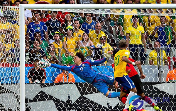 在本场比赛中,奥乔亚为了扑出内马尔直奔死角的头球,他差不多都撞上了门柱;比赛第69分钟,马尔在禁区内距球门9米处停球后射门,奥乔亚直接用身体将球挡出;他还成功用右手挡出席尔瓦在小禁区线上的头球攻门。巴西的猛烈进攻在门神奥乔亚面前也无力回天。