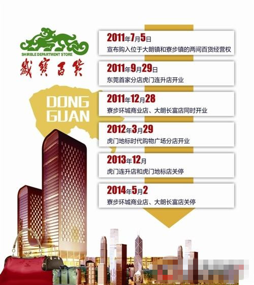 日前,香港上市企业岁宝百货控股(中国)有限公司(以下简称“岁宝百货”)在官网发布公告称,岁宝百货寮步环城商业店、大朗长富店已于2014年5月2日停业。加上之前关停的虎门两家门店,岁宝百货在东莞的4家门店已全部停止运营,这意味着这家深圳百货业巨头已经彻底退出东莞。