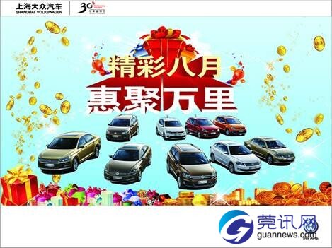 精彩八月特价车:活动期间推出多款特价车型,POLO车系综合优惠万元起、朗逸、朗行、途安、帕萨特、桑塔纳……现车钜惠,最高综合优惠40000元!