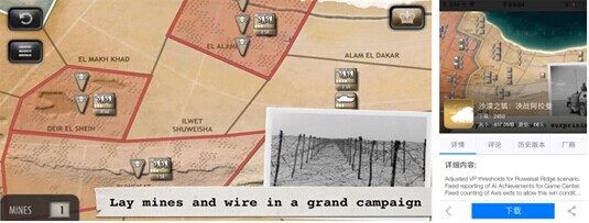 沙漠之狐是一款真正考验玩家策略和智谋的游戏,游戏没有华丽的画面,有的只是激战。玩家将重回二战的经典战场,如果说三国志是中国史的经典策略游戏,那么本作就是世界级的史诗策略游戏,玩家可以选择阵营、盟军、轴心国开始游戏,然后一步一步的征服地球。在游戏中玩家要考虑敌我双方的兵力,阵型,兵种等等各种要素,非常有意思,一旦上手,根本就停不下来。