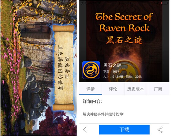 这款游戏可以说是逃脱解谜游戏的经典之作了,从剧情、画面、玩法上都无可挑剔。游戏中主角回到家乡,却发现家乡一个人都没有,好像犹如空气蒸发一般,而主角也发现自己无法离开这座城市,主角要一步步探索这个城镇,解开黑石消失之谜,50个美丽的场景,数百种任务道具让游戏乐趣无穷,同时游戏还收录了大量的解谜要素,例如拼图、调查、密码等。简单的操作,无穷的乐趣,玩游戏的同时犹如看一部小说,特别适合在长途旅途中玩耍。