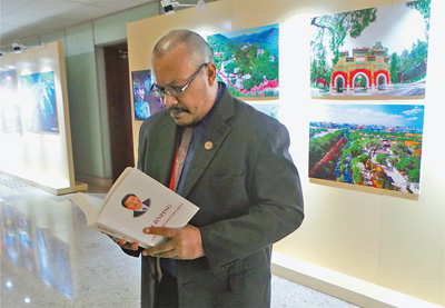 高官会后,巴布亚新几内亚外事官员帕提·皮雅乐拿起一本全新的《习近平谈治国理政》,小心地揭开外面包装的塑料薄膜,翻开目录看了起来。他对记者说:“经济发展这部分是我最感兴趣的内容。中国究竟是如何走出了自己独有的发展经济的路子,中国经济的下一步会怎么迈?相信这本书会给我答案。”