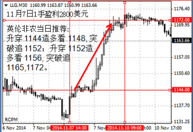 现货黄金价格料有较大反弹”,明确对非农走势作出具体预测,而当日非农公告后亦证明了此预测是完全的准确。而据提供此评论的英伦金业客户提供,当日客户甫在早上便接收到操作建议“升穿1144造多看1148, 突破追 1152;升穿1152造多看1156, 突破追1165,1172”,根据建议挂单操作,可捕捉28美元波幅,投资者一手操作便可获得2800美元的丰厚回报。