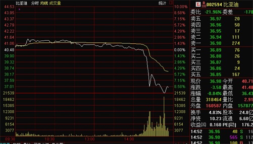 12月18日午后,比亚迪港股突然暴跌40%,并且引发A股连锁反应,盘中一度触及跌停板。截至14:50,比亚迪A股报收37.01元,下跌8.57。有市场传闻系巴菲特拟大举减持。记者第一时间致电公司,比亚迪方面回应,公司现在一切正常,没有任何突发事件,对巴菲特减持传闻并不知晓。