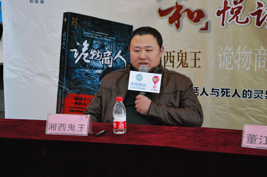 近日,著名悬疑畅销书作家湘西鬼王携新书《诡物商人》在天津图书大厦举行和悦读会大家分享&签售会,特邀嘉宾、著名作家董江波到场助势。据了解,天津图书大厦是天津市人流量最高的商场之一,为了迎接湘西鬼王的到来,天津图书大厦提前两天就做了大屏幕广告宣传签售消息。签售现场,湘西鬼王和董江波与读者们亲密互动,现场气氛融洽。对于读者的提问,湘西鬼王和董江波也分别做了详尽的答复。整场分享会非常成功,现场人流完全可以用爆满形容。