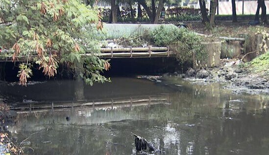 记者在人民涌新民段看到,这里的河水浑浊发黑,水中还有不少黑黄色的淤泥堆积,并散发出阵阵恶臭。据了解,人民涌发端于乌沙社区,经新民社区流入茅洲河,总长约4.48公里,工业排污口多而且复杂,严重影响附近居民的生活。