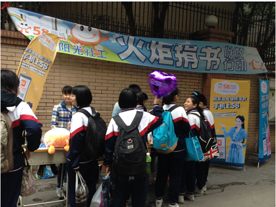 2014年10月28日至12月31日,由58同城广州分公司联合广州知名公益组织——阳光社会事务中心及火炬捐书公益团队举办的“阳光58,阳光社工;火炬捐书,快快行动!”公益捐书系列活动在广州圆满进行。