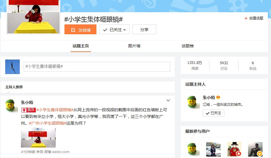(“小学生集体砸眼镜”话题截图)