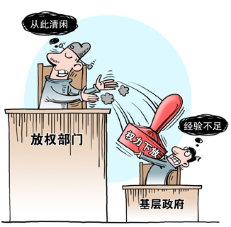 由于权力层层下放,基层政府增加了许多管理事项,人变得越来越忙;但由于不熟悉新的管理业务,处理事情则有些摸不着头绪。而原有的放权部门在放权之后,相比之下越来越闲。