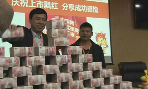 这位郑州土豪老板发钱的原因在于,其掌控的河南某电子商务有限公司1月16日上市后股票一路飙升,于是,公司老总拿出自己的一部分股份用于重奖19个骨干员工。