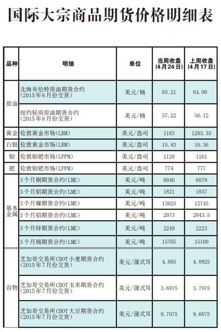 国际大宗商品期货价格明细表(2015-4-27)