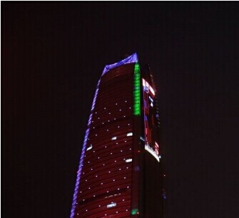 东莞第一高楼在LED外墙现场直播“羽球大战”。