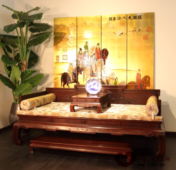 戴为红木乐拍产品二:TW富贵荣华罗汉床檀雕工艺精品