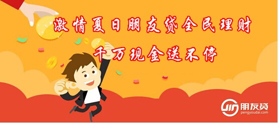 激情夏日,赚钱不休,朋友贷全民理财。各位财主,从2015年6月1日00:00“朋友贷全民理财千万现金送不停”活动已经正式拉开帷幕。此次活动将持续三个月,陪伴大家整个夏天。活动期间,朋友贷将送出千万现金,力度之大,前所未有。