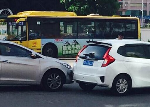 昨日(6月8日)下午4时许,常平镇常平大道路段发生一宗追尾交通事故。事发时,一辆银色北京现代车车速较快,一不小心就“吻”上了前面的白色本田车,造成银色北京现代车车头受损,被追尾的白色本田车后尾箱变形,幸好事故没造成人员伤亡。