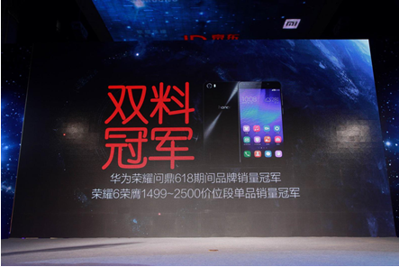 荣耀6,冠军!荣耀勇夺京东618品牌销量冠军和荣耀6在价格段1499-2500元档位冠军双料冠军,并夺得天猫618全品类销售冠军!6月18日,荣耀618年中玩购大趴完美收官!荣耀手机全网十大平台销售超过280万台,荣耀精品销售额超35亿元。作为此次荣耀精品盛宴的销售主力军,拥有3GB超大内存、8核4G名牌机皇荣耀6同样战绩显赫,劲销70万台。同时,荣耀6也是京东有史以来的智能手机销量冠军。凭借超高产品品质、强悍硬件性能、无敌性价比,以及全网几百万用户高达97%的好评率,荣耀6成为全网最受消费者喜爱的4G旗舰机。