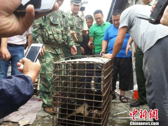 随后,新阳边防派民警赶到现场并且疏散附近居民,此时黑熊用手撞开居民家铁护栏后钻进厂房,趴在杂物下面。当地公安、林业部门赶到现场后,为了为防止群众被侵袭,林业部门用麻醉枪对黑熊进行麻醉。