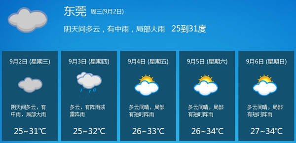 预计今天有中雨,局部大雨,明日起降水趋于减弱,间中有阵雨,部分时间可见阳光;展望4日~6日以多云天气为主,局部有短时阵雨,天气趋于炎热。