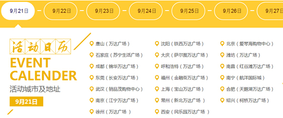基于这样的判断,易车中秋乐车购活动在北京、上海、武汉、沈阳、福州等一二线城市的基础上,加大了二三线城市的倾斜力度,增加了大庆、唐山、常州、绍兴、潍坊、东莞等城市。此次活动依然选择了各城市核心商业广场,如合肥天鹅湖万达广场、徐州万达广场、唐山万达广场均为当地商业地标,覆盖数十万主流消费人群。除了线下场地,易车乐车购活动专题页面也已经上线,同步展开促销活动,用户可在线完成买车、贷款、养车等,也可线上报名后至线下参加活动。