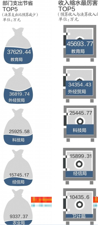 东莞市教育局去年预算收入和支出均高达62655.78万元,结果去年决算收入才16962 .01万元,决算支出才25026.34万元,比预算分别少了45693.77万元和37629.44万元,成了收入和支出缩水最严重的部门。