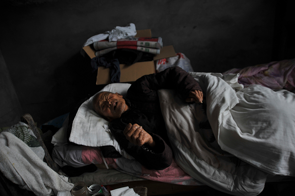 见记者进来,王洪雨老人挣扎着试图坐起来。王昌利告诉记者,老人的腿在4个月前上访的路上摔断了,记者立即按住了老人。