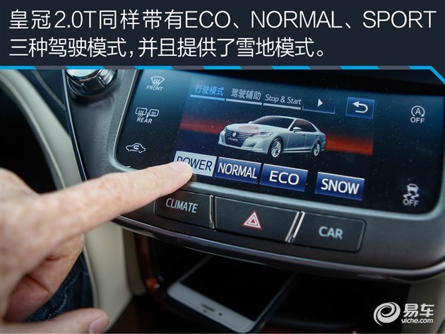 皇冠2.0T提供了四种不同的驾驶模式:普通、运动、经济和雪地模式。在不同模式下,方向盘助力、油门刹车踏板、变速器的调校都会发生改变,以满足不同的驾驶需要。运动模式的设定可能更多考虑了年轻消费者,这也是新一代皇冠开始走年轻路线的表现。