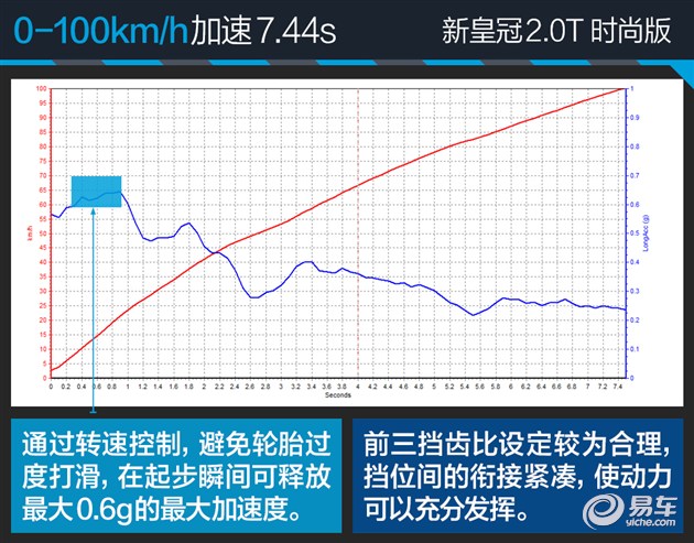 随着油门加大,当转速超过1600rpm后,皇冠2.0T浑厚的动力开始苏醒,能明显的感觉到这台涡轮增压发动机的强劲动力,只要不忽然将油门深踩到底,涡轮增压所带来的突兀感也并不会那么的明显。在我们之前0-100km/h测试中7.44秒的成绩也算得上是很优秀了。