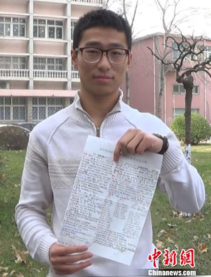 一位学生展示考试时使用过的复习纸。 蔡迅翔摄