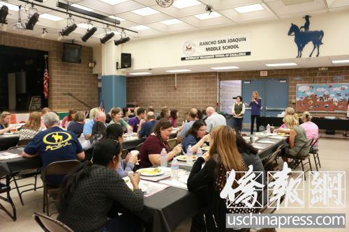 “很多家长都为他们国家的食物感到骄傲,他们非常愿意带来自己制作的食物,”斯滕塔说。据了解,Rancho中学华裔学生数量约为20%,为了准备今天的国际美食节活动,华裔家长提前两天就在微信群中进行美食接龙,以免带来重复的饭菜。