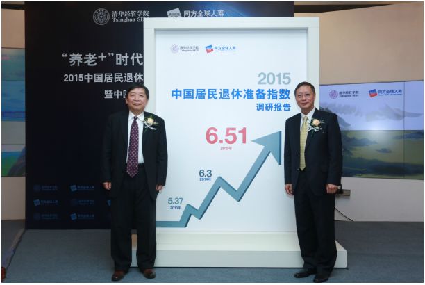 【2015年12月9日,北京】今天,清华大学经济管理学院中国保险与风险管理研究中心、同方全球人寿保险有限公司联合在京发布《2015中国居民退休准备指数调研报告》,今年中国居民的退休准备指数为6.51,较去年的6.3略有提高,但居民退休准备状况仍不足。同方全球人寿董事长王林与清华大学经管学院中国保险与风险管理研究中心陈秉正教授共同提出,一个包括老年护理、老年医疗、老年金融等在内的养老生态圈正在形成,我国正步入“养老+”时代。